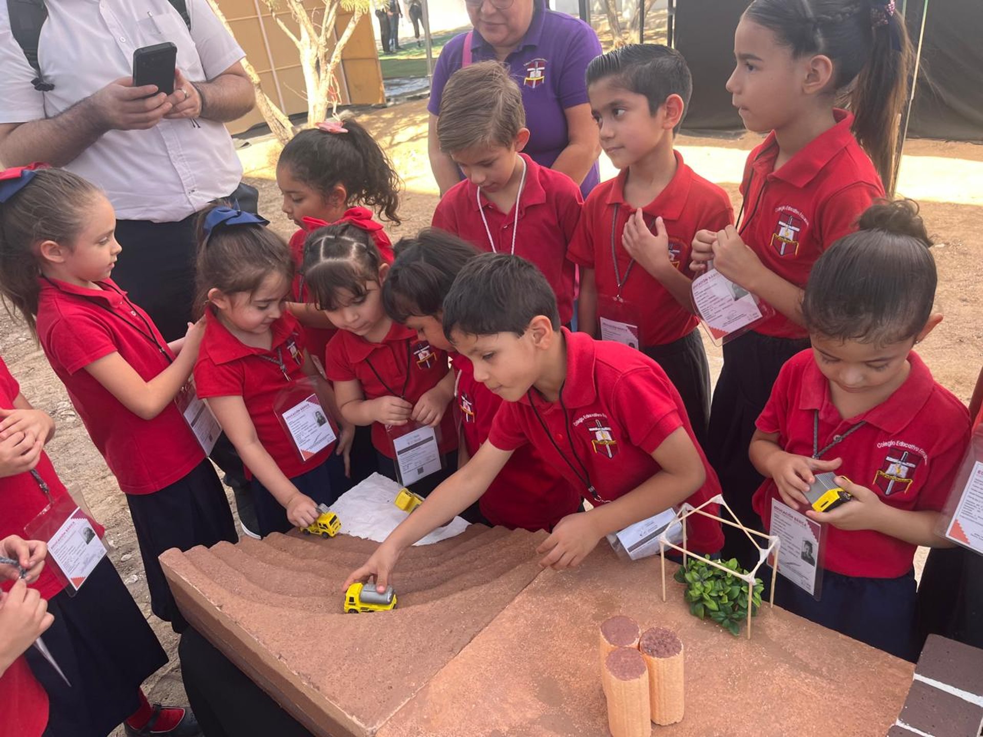 En el Área de Exploración, los niños descubren que esta es la primera etapa de una mina. A través de una maqueta y ejemplos reales, aprenden cómo se identifican zonas mineralizadas y cómo se realizan las barrenaciones con equipo a escala, observando incluso un testigo auténtico de mineralización. La actividad explica las principales tareas de una campaña de exploración y resalta la importancia de cuidar el medio ambiente antes, durante y después del proceso.