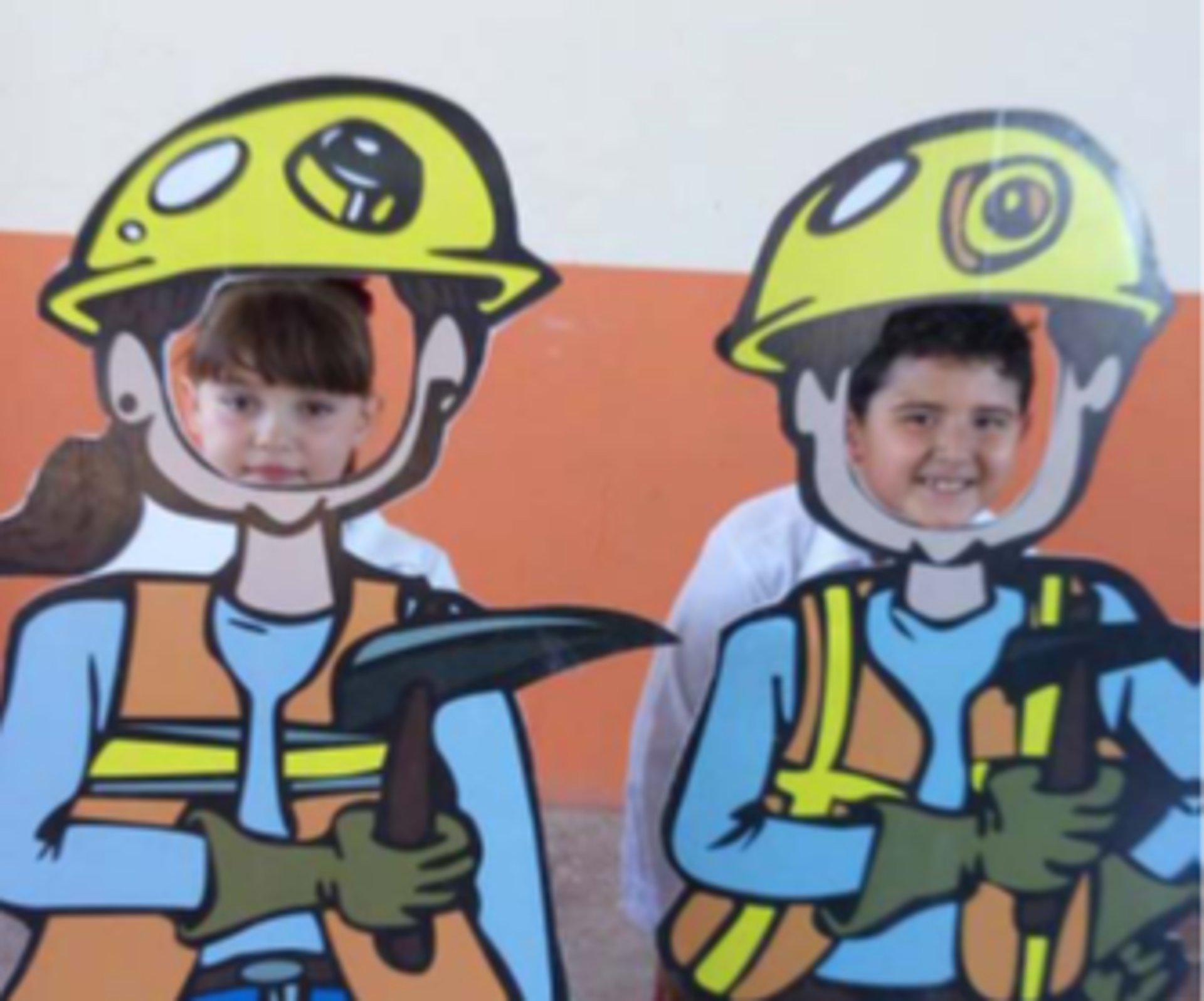 En la actividad Yo quiero ser…, los niños y niñas se convierten en protagonistas al posar para divertidas sesiones de fotos. A través de siluetas de mineros, geólogos y metalurgistas, colocan su carita para imaginarse en estas profesiones. La dinámica fomenta la identidad y la equidad de género, mostrando que tanto mujeres como hombres pueden formar parte del mundo de la minería y la ciencia.
